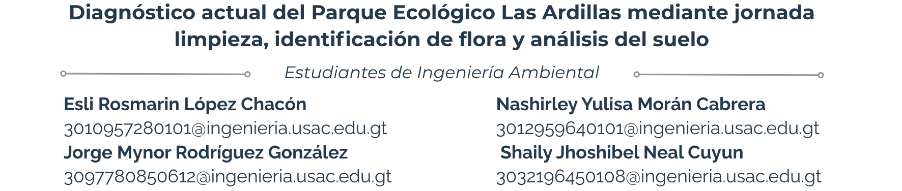 El Parque Ecológico Las Ardillas, ubicado dentro de la Universidad de San Carlos de Guatemala, constituye un espacio natural de gran importancia ecológica y social, utilizado como lugar de recreación y aprendizaje ambiental. Este estudio, desarrollado por estudiantes de Ingeniería Ambiental en el marco de sus prácticas intermedias, tuvo como objetivo promover la conservación del parque mediante jornadas de limpieza, registro de especies y levantamiento de información ambiental. Para ello, se emplearon herramientas tecnológicas como la aplicación iNaturalist, que permitió subir fotografías e identificar científicamente árboles, hongos, mariposas, aves y otros animales, y QGIS junto con aplicaciones de GPS para el análisis geoespacial del área. Además, se utilizaron plataformas para estudiar biomas, ecorregiones, carbono actual y potencial, biomasa leñosa, propiedades del suelo y riesgos ambientales, incluyendo sequías, los cuales resultaron bajos. Entre las especies observadas se destacan la hierba mora cimarrona, la pacaya, la plantación de café, y mariposas como la Dirsena clujil, así como diversos árboles de interés ornamental y ecológico. El enfoque adoptado permite comprender el estado del ecosistema y genera un vínculo con la comunidad estudiantil, incentivando la educación ambiental y motivando a los estudiantes y visitantes a conservar y mantener este parque ecológico, asegurando su sostenibilidad y disfrute a largo plazo.